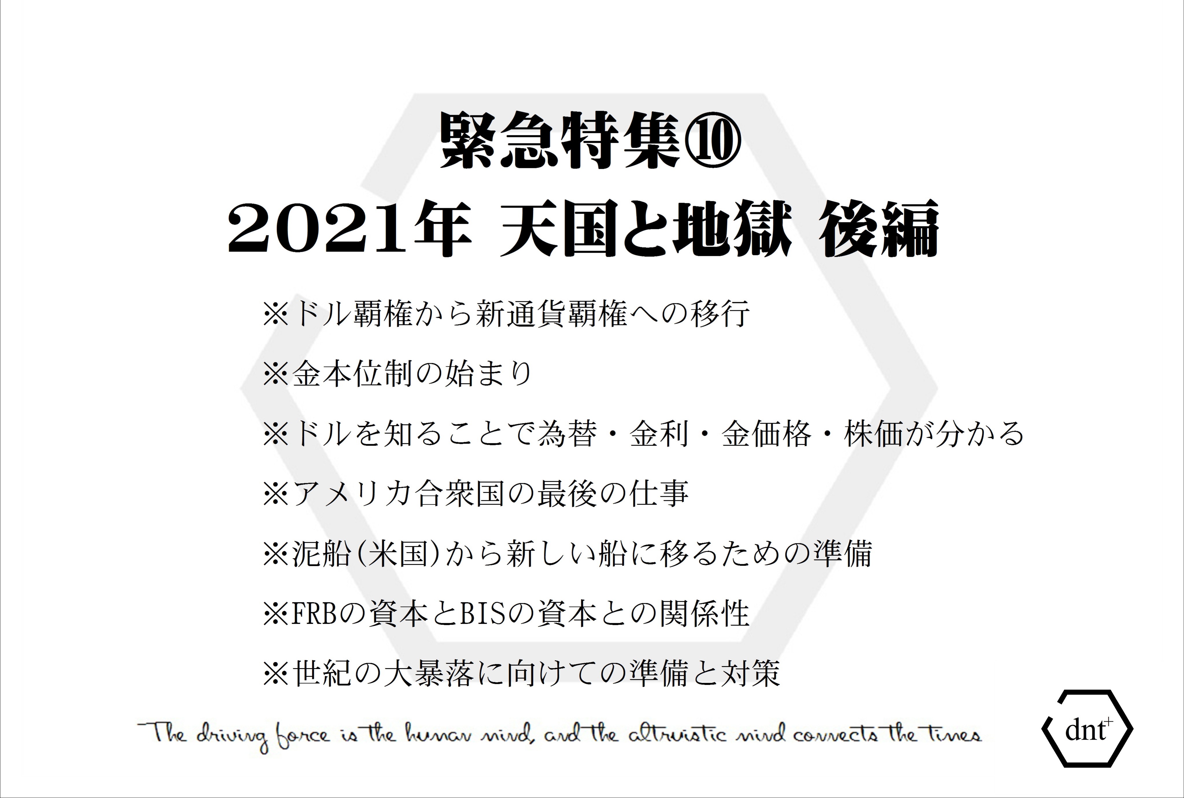 また、FRBの意志も政府も、最後に最高の輝きを残すために一生懸命お金をバラまくため、泥船が沈むまではかなり大きな恩恵が待っています。私達としては、それを最大限に活用させていただき、ユダヤ資本が移行する前に新しい船に飛び移る…