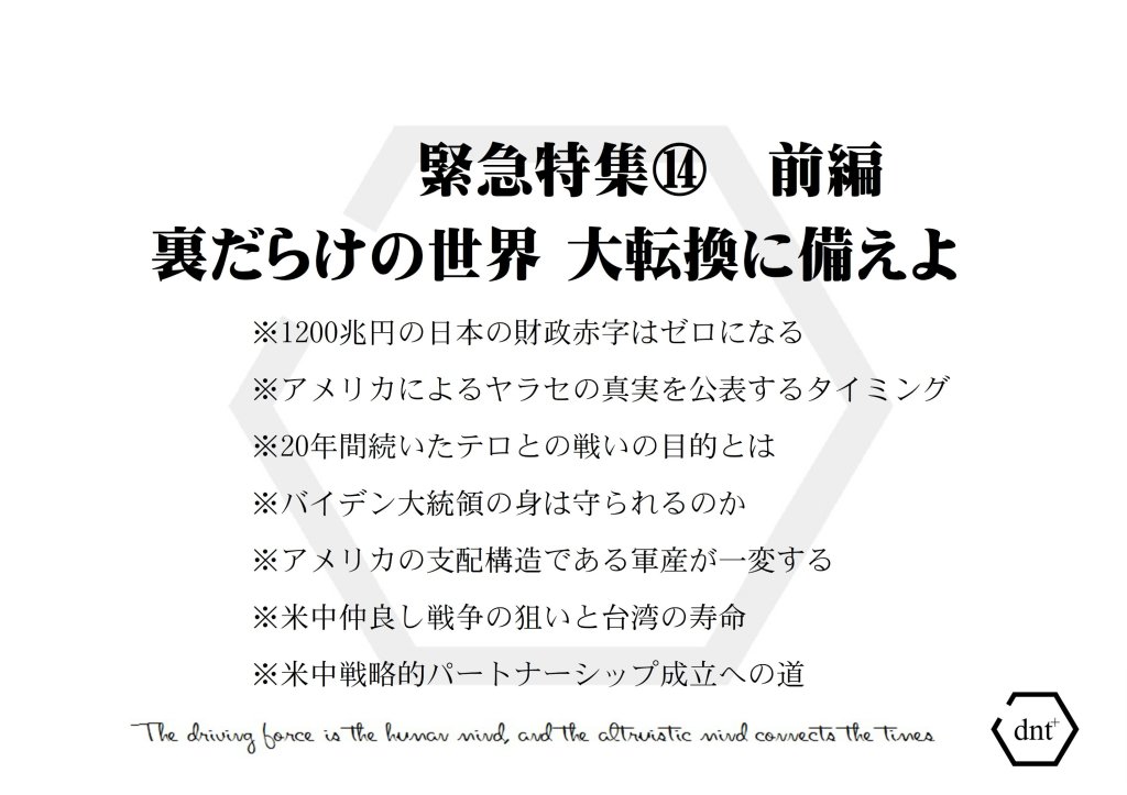 コロナは手が付けられない状態になっていますが、このような命の危険があるときに国から給付金をもらったり、無料でワクチンが打てたりすると、国民は国の言うことを聞くようになります。この何が何だか分からないパニック状態のタイミングで大変革を進めようとしていることの一つが『金融財政リセット』💥