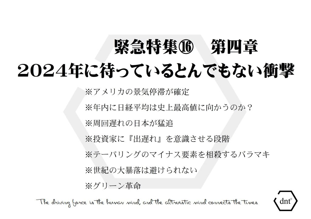 とにかく、現段階では「アメリカが日本化する」というのは、表向きのマイナスイメージ(長期経済停滞への危機感)を与え、投資家を日本市場へと誘導する段階に入ってきているということを頭に入れておきましょう☝️
