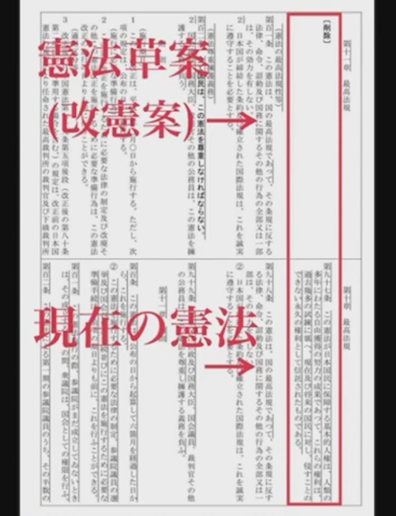 改憲案では、憲法第97条の『基本的人権』が削除されています。
