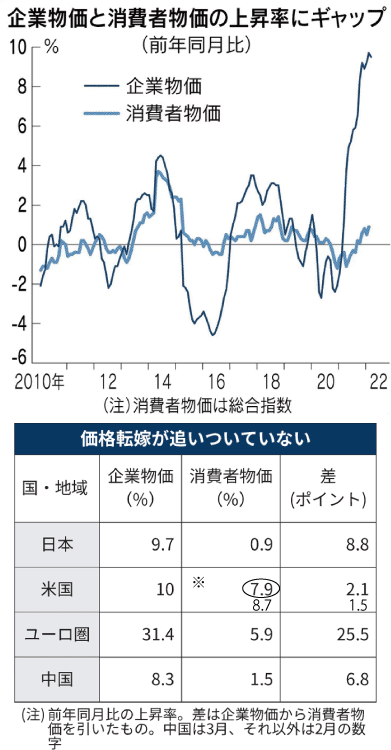 画像を見て分かる通り、国によって企業物価の消費者価格への転嫁が異なります。