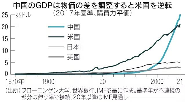 資本主義の世界では「資本が中心的価値観」であり、購買力平価をベースにした米中日英のGDP比では、8年前の2017年にアメリカは中国に抜かれている。